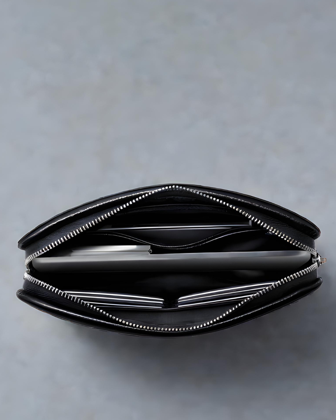 This handbag features a single zipper closure, offering easy access to your essentials while maintaining a minimalist aesthetic. Whether you're navigating a bustling city street or attending a formal soirée, this handbag is the epitome of versatility, effortlessly complementing any ensemble.